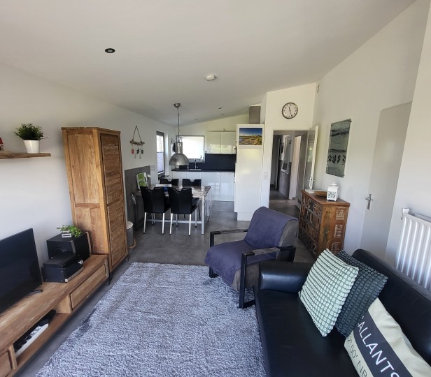 Wohnbereich: Gemütlicher Wohnbereich mit TV, DVD, Blu-Ray, CD-Radio und WLAN – der perfekte Ort zum Entspannen nach einem Strandtag.