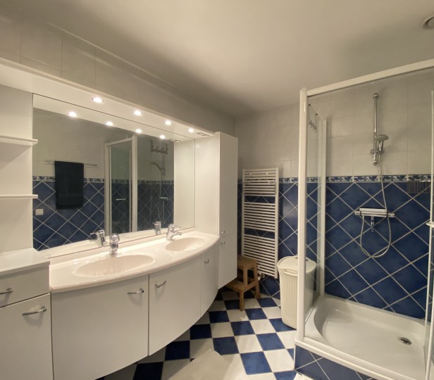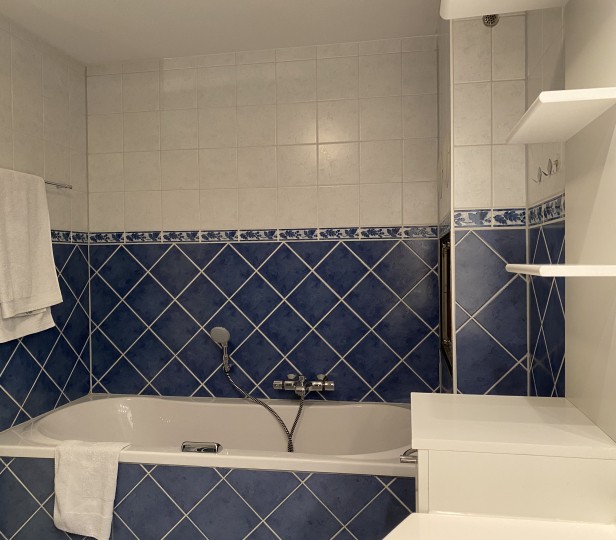 - Badezimmer mit Badewanne und Dusche