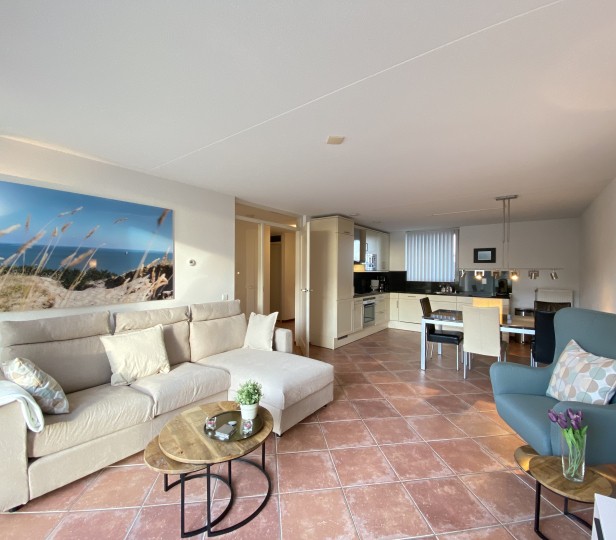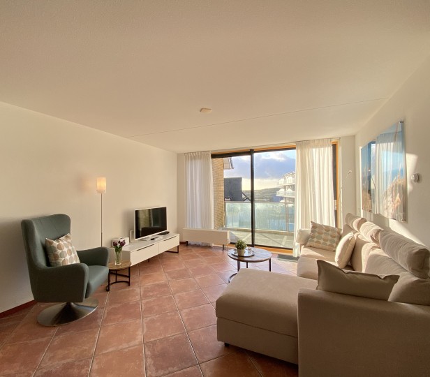 In Callantsoger Staete vindt u dit gezellige appartement voor 4 personen. Het is eind 2019 opnieuw ingericht en heeft nu een frisse en moderne strand-uitstraling gekregen! In de woonkamer staat een hoekbank en een fateuil. De open keuken is compleet ingericht en heeft een gezellige eethoek, waar u lekker kunt zitten. De slaapkamers hebben éénpersoons boxspringbedden van 80x200. In de badkamer heeft u een whirlpool bad, een douche, een dubbele wastafel met grote spiegel en een toilet tot uw beschikking. Vanuit de hal is een tweede toilet bereikbaar en de bergruimte, waar een wasmachine en droger staat. Via een schuifdeur in de woonkamer kunt u het balkon op. Deze is op het zuiden gelegen en voorzien van een tuinset!