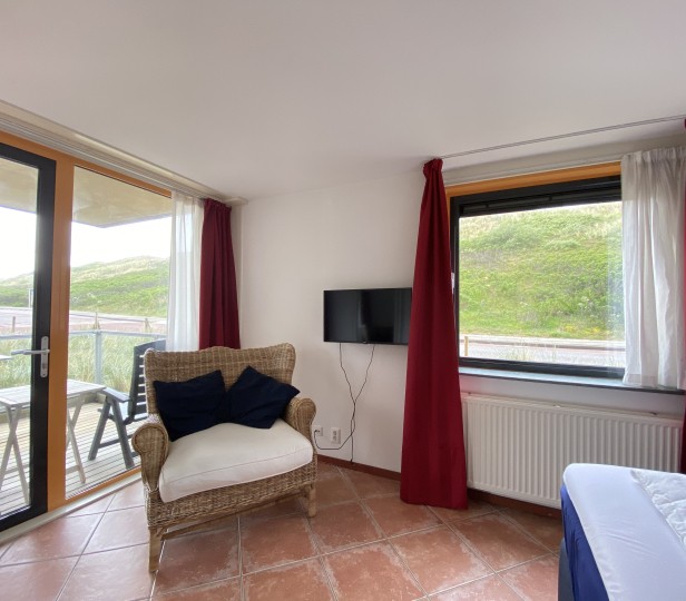 Een sfeervol appartement aan de duinen van Callantsoog met genoeg ruimte voor 2 personen! Het appartement is te vinden in het complex Callantsoger Staete, aan het gezellige Dorpsplein en op steenworpafstand van de strandopgangen van Callantsoog. De woonkamer en open keuken zijn licht en van alle gemakken voorzien. Vanuit de woonkamer kom je op het terras waar je kunt genieten van het uitzicht op de duinenrij van Callantsoog. In de slaapkamer een extra TV en bedden van 2x90x200. De badkamer is compleet met Whirlpool, douche en dubbele wastafel. Vanuit de hal is tevens een separate toilet en een wasruimte te vinden. Kortom, genieten van een paar dagen weg zal hier geen probleem zijn!