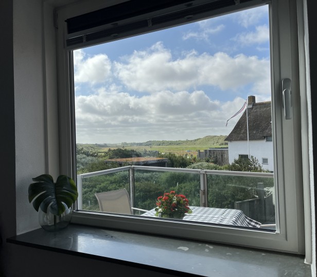 Op het vrij gelegen hoekbalkon (zuid) kun je ontspannen na een dagje in de omgeving.
