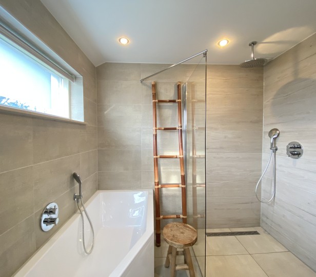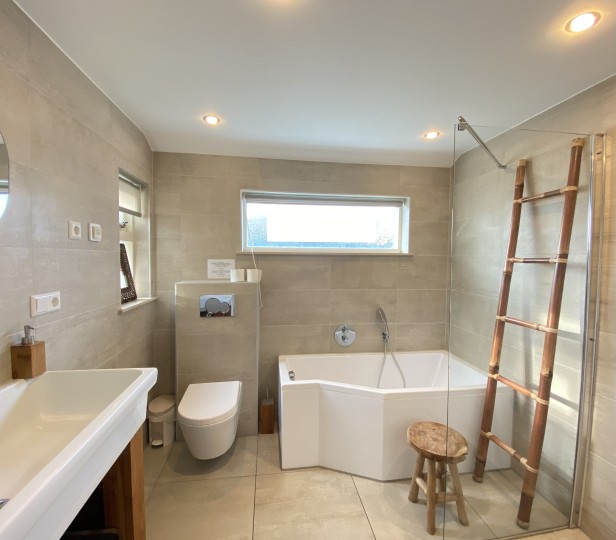 - Badkamer met douche & bad