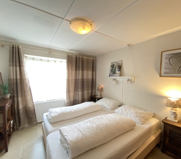 Een leuke, vrijstaande bungalow met plek voor 4! De woning is ruim en gezellig ingericht. Geniet in de woonkamer met de aangrenzende open keuken. Vanuit de woonkamer kunt u via het schuifpui het terras op, welke zich aan de zonkant bevindt! Er zijn drie slaapkamers. De ouderslaapkamer is voorzien van boxspringbedden 2x90x200. De tweede slaapkamer heeft een bed van 80x210 en een bed van 90x210. In de derde slaapkamer staat een bed van 90x200. De badkamer is recentelijk gerenoveerd en is compleet met bad, inloopdouche, wastafel en toilet. Op de bovenverdieping is als extra een zolderkamer waar u kunt relaxen. Uw auto kunt u naast het huis parkeren!