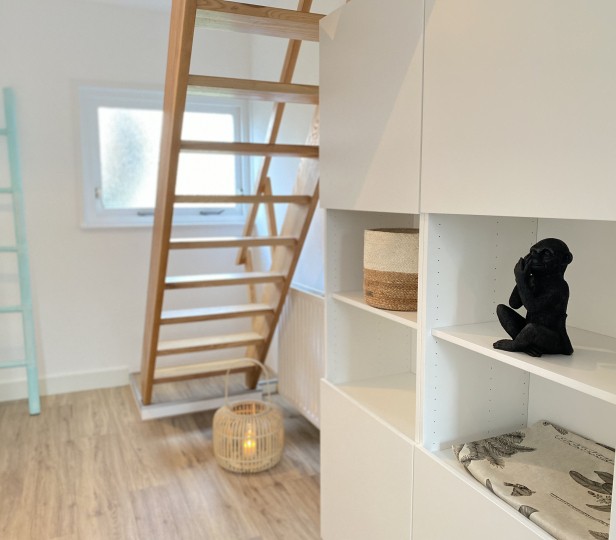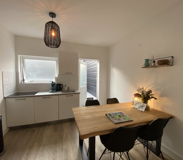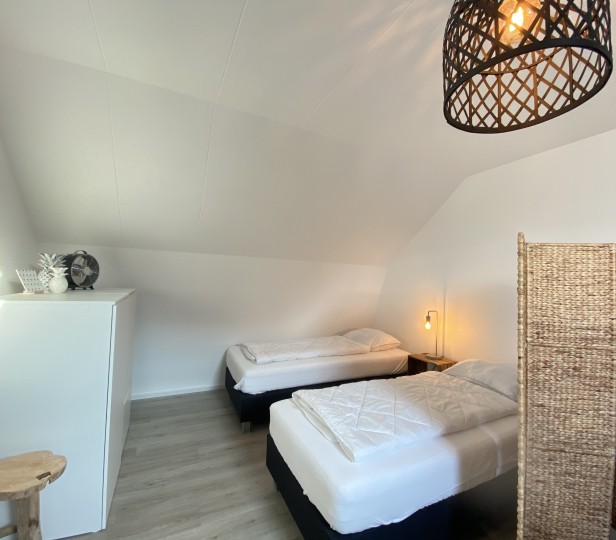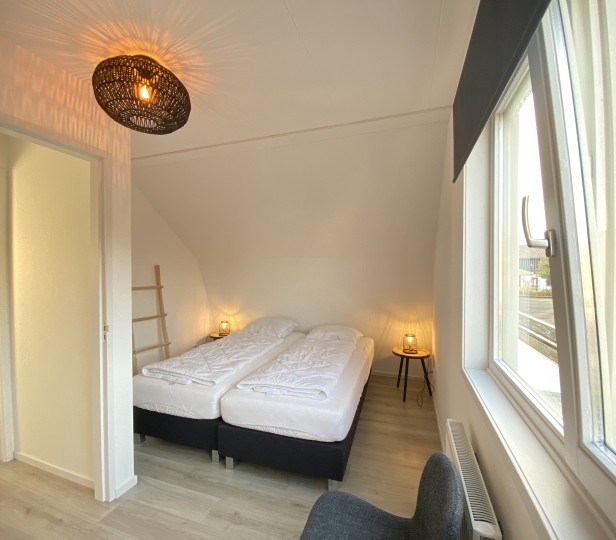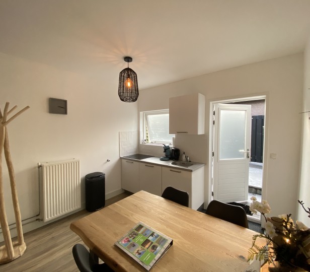 Deze leuke woning, gelegen achter het Verhuurburo aan de Dorpsweg, is in 2019 compleet gerenoveerd. Met plek voor 4 personen zit u hier op een prachtige locatie, op loopafstand van strand en centrum. Buiten bevindt zich een gezellig gedeeld terras met een loungebank, waar u de zon in de ochtend en middag kunt vinden. Op de begane grond vindt u de keuken met eettafel. Links naast de trap is de badkamer met inloopdouche en toilet. Op de eerste verdieping zijn de slaapkamers. Waarvan 1 slaapkamer met inloopkast en 1 slaapkamer gecombineerd met een zithoek. De nieuwe boxspringbedden zijn 2x90x200 en voorzien van dekbedden en kussens. In de zithoek staat een 2-zitsbank, fateuil en TV.