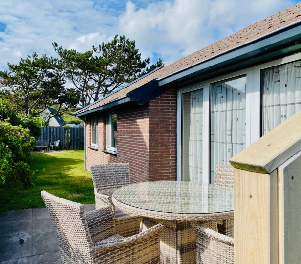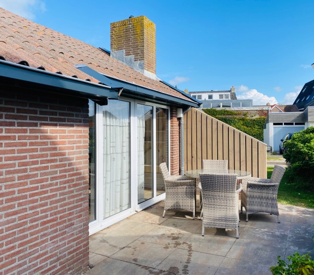 Vrijstaande 4-persoons bungalow gelegen op steenworpafstand van het Dorpsplein en het strand. Dit vakantiehuis heeft een gezellige ruime open keuken/woonkamer met een houtkachel in de zithoek en een dinertafel aan de raamzijde. Vanuit de hal zijn de 2 slaapkamers, badkamer en toilet bereikbaar. In 1 slaapkamer is een lits-jumeaux van 2x80x200 en de andere slaapkamer heeft 2 eenpersoonsbedden van 80x200. De woning beschikt tevens over een bijkeuken en niet te vergeten, het enorme grasveld en terras. Honden zijn welkom.