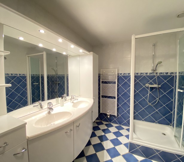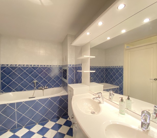 - Badkamer met bad en douche