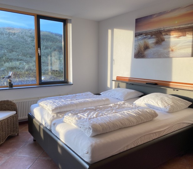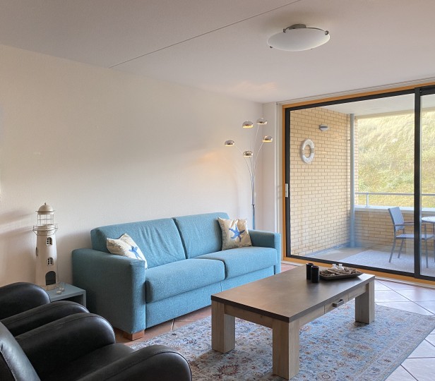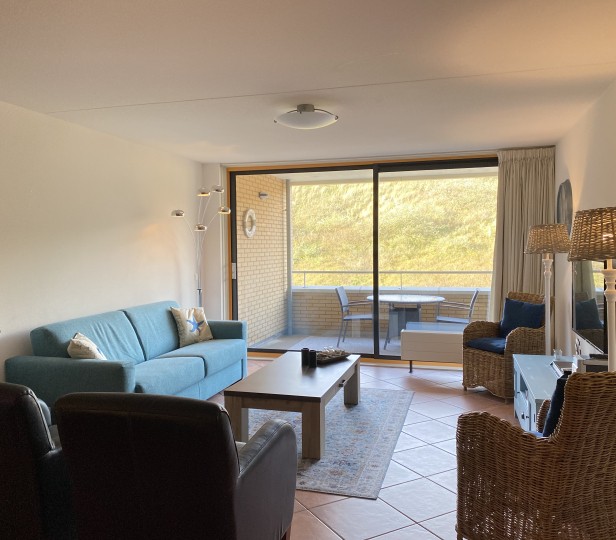 Appartement A203 is geschikt voor 2 personen en heeft een warme uitstraling. Het is gelegen op de tweede verdieping en heeft een overdekt balkon met uitzicht op de duinen! In de woonkamer staat een heerlijke bank en twee fauteuils. In dezelfde ruimte de keuken met een eettafel waar u op goede stoelen lekker aan kunt zitten. In de slaapkamer staat een 2-persoons, elektrisch verstelbaar, bed. Het bed bestaat uit enkele matrassen van 2x90x200. Tevens is er een extra TV in de slaapkamer. De badkamer heeft een ligbad, een dubbele wastafel en douche. Het toilet is separaat en de bergruimte is voorzien van een wasmachine en droger. Bij dit appartement is er een privé parkeerplaats en tevens een kelderbox beschikbaar om bijvoorbeeld uw fietsen te stallen.